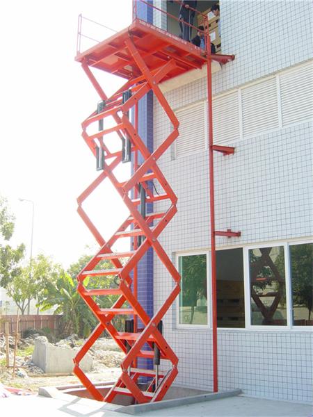 剪叉式升降貨梯是用于建筑物層高間運送貨物的專用液壓升降臺產品主要用各種工作層間貨物上下運送;立體車庫和地下車庫層高間汽車舉升等。